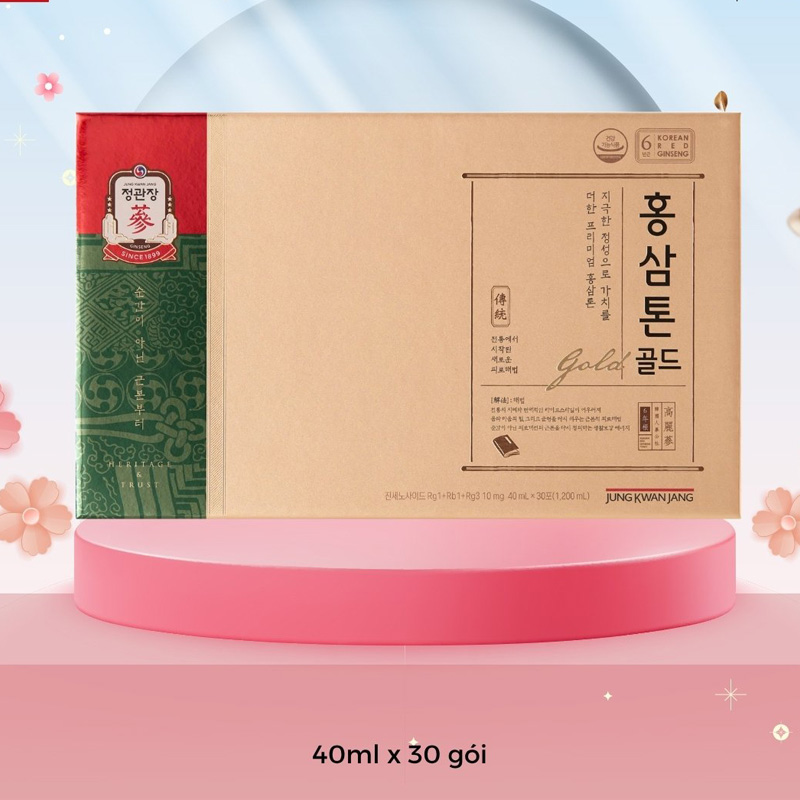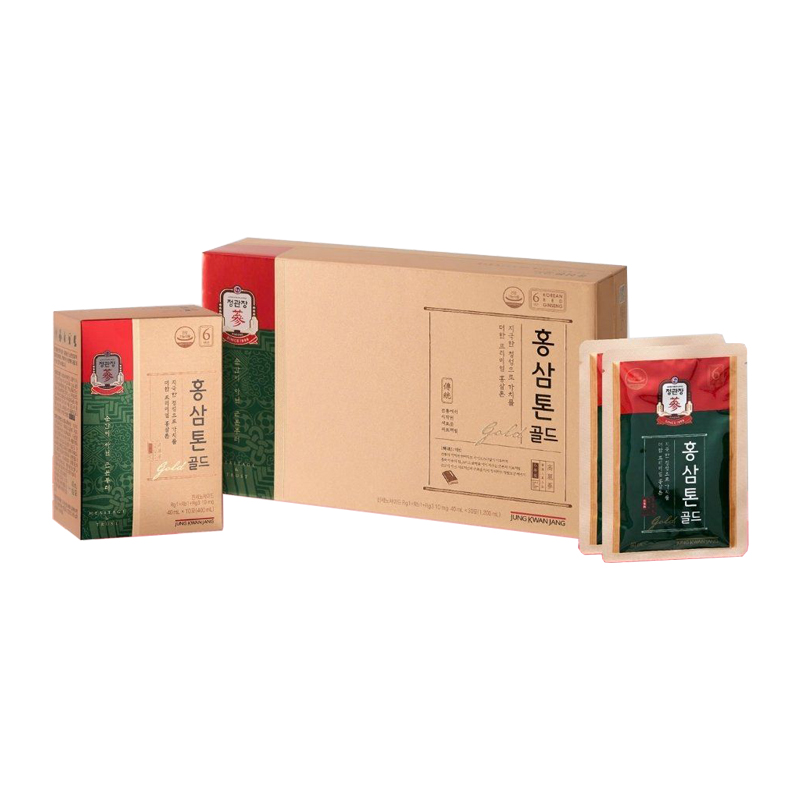- Nước Hồng Sâm Hàn Quốc KGC Jung Kwan Jang Tonic Gold 30 Gói x 40ml là sản phẩm cao cấp thuộc thương hiệu Cheong Kwan Jang (Jung Kwan Jang) – tập đoàn nhân sâm quốc gia của Hàn Quốc với hơn 120 năm kinh nghiệm trong nghiên cứu và sản xuất Hồng sâm.