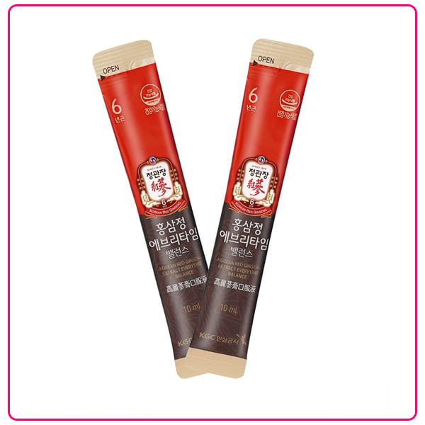 - Tinh chất Hồng Sâm Everytime Balance hộp 30 gói x 10ml là sản phẩm nổi tiếng đến từ thương hiệu KGC Cheong Kwan Jang (Jung Kwan Jang) – tập đoàn nhân sâm hàng đầu Hàn Quốc với hơn 120 năm lịch sử.